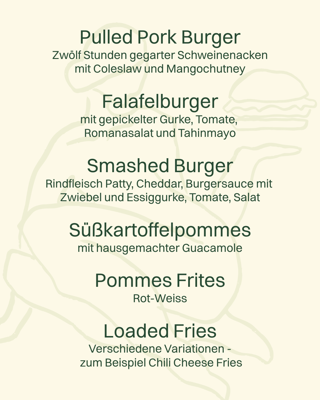 Hochqualitative Burger und Pommes Frites für Firmenfeiern, private Events und Märkte